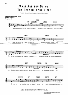 What Are You Doing The Rest Of Your Life?, written by Michel Legrand with words by Alan Bergman and Marilyn Bergman, arranged for voice and easy keyboard with guitar chords.