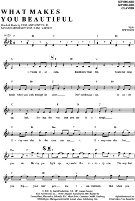 What makes you beautiful - Sheet Music for Keyboard One Direction