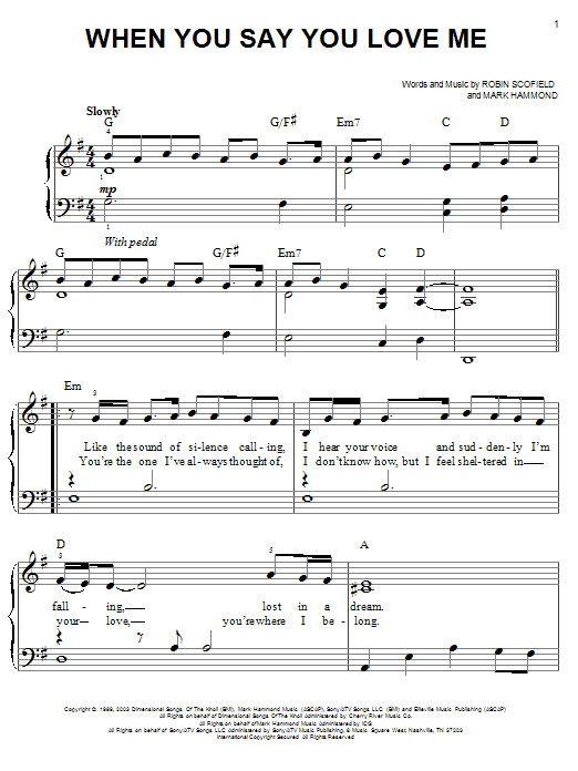 When You Say You Love Me (Easy Piano)