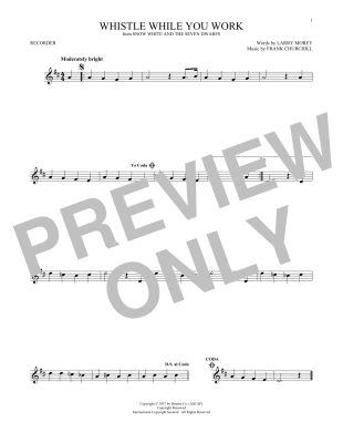 Whistle While You Work (from Snow White And The Seven Dwarfs) - Sheet Music for Larry Morey & Frank Churchill