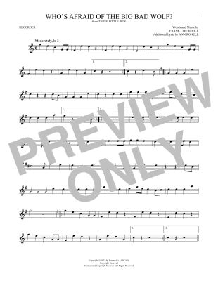 Who's Afraid Of The Big Bad Wolf? (from Three Little Pigs) - Sheet Music for Frank Churchill