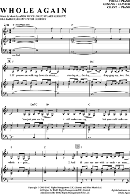 Whole Again - Sheet Music for Piano and Voice Atomic Kitten