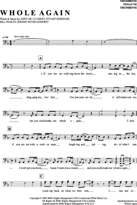 Whole Again - Sheet Music for Posaune / Bariton Atomic Kitten