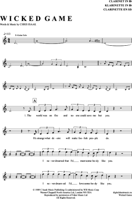 Wicked Game - Sheet Music for Clarinet in B-flat Chris Isaak