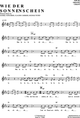 Wie Der Sonnenschein - Sheet Music for vocals Michael Holm