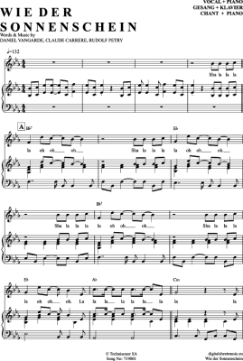 Wie Der Sonnenschein - Sheet Music for Piano and Voice Michael Holm