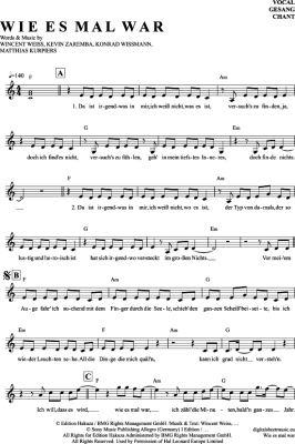 Wie Es Mal War - Sheet Music for vocals Wincent Weiss