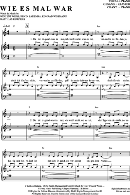 Wie Es Mal War - Sheet Music for Piano and Voice Wincent Weiss