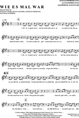 Wie Es Mal War - Sheet Music for Alto Saxophone Wincent Weiss
