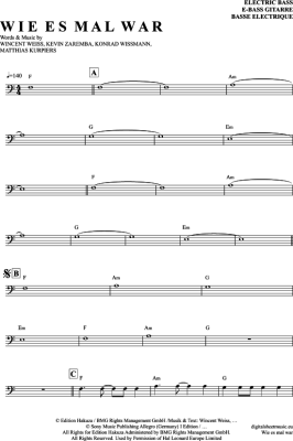 Wie Es Mal War - Sheet Music for Bass Guitar Wincent Weiss