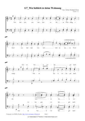 Wie lieblich ist deine Wohnung - Sheet Music for male choir Hubert Bernhard Klein