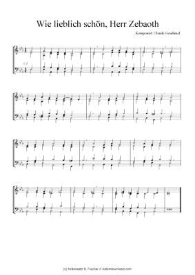Wie lieblich schön, Herr Zebaoth - Sheet Music for Quartet in C Claude Goudimel