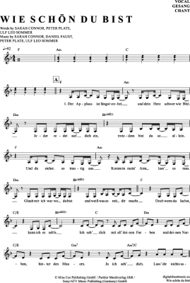 Wie schön du bist - Sheet Music for vocals Sarah Connor
