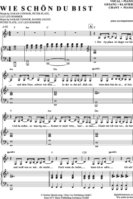 Wie schön du bist - Sheet Music for Voice with Piano Accompaniment Sarah Connor