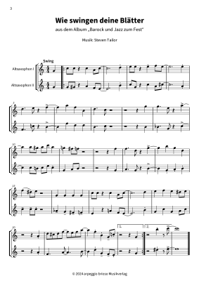 Wie swingen deine Blätter - aus dem Album Barock und Jazz zum Fest - Sheet Music for alto saxophone duet Steven Tailor