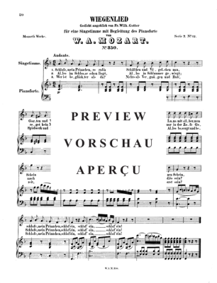Wiegenlied (Schlafe mein Prinzchen K.350) - Sheet Music for High Voice and Piano Wolfgang Amadeus Mozart