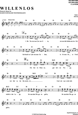 Willenlos - Sheet Music for Keyboard Westernhagen