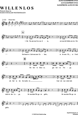 Willenlos - Sheet Music for Alto Saxophone Westernhagen