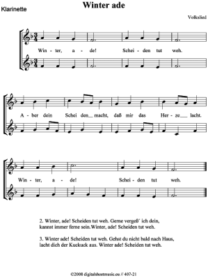 Winter ade - Sheet Music for Duo Klar Volkslied