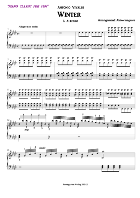 Winter - Allegro - Sheet Music for Piano Solo Antonio Vivaldi (arr. Akiko Inagawa)