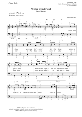 Winter Wonderland - Sheet Music for piano solo medium Weihnachtslied