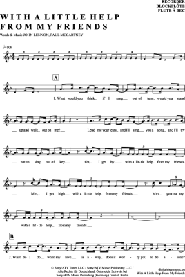 With a little help from my friends - Sheet Music for recorder The Beatles