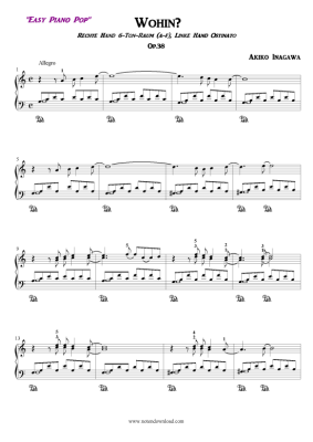 Wohin? - Sheet Music for piano solo medium easy Akiko Inagawa