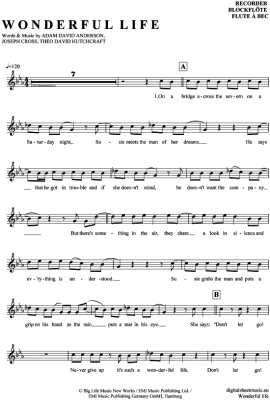 Wonderful life - Sheet Music for recorder Hurts