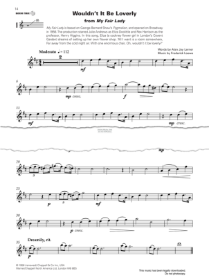 Wouldn't It Be Loverly, written by Frederick Loewe and arranged by John Kember for alto saxophone with piano accompaniment in digital sheet music format.