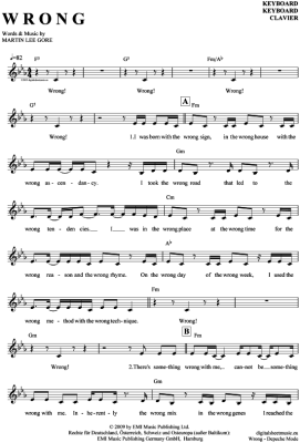 Wrong - Sheet Music for Keyboard Depeche Mode