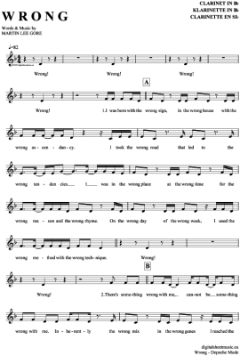 Wrong - Sheet Music for Clarinet in B-flat Depeche Mode