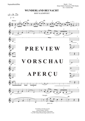 Wunderland bei Nacht (C - Dur) - Sheet Music for soprano recorder solo Bert Kaempfert