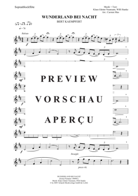 Wunderland bei Nacht (D - Dur) - Sheet Music for soprano recorder solo Bert Kaempfert