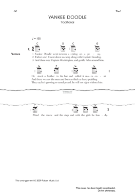 The traditional work Yankee Doodle, arranged for ukulele songbook with words and ukulele chords and available to print instantly.