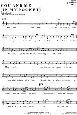 You and me in my pocket - Sheet Music for transverse flute Milow