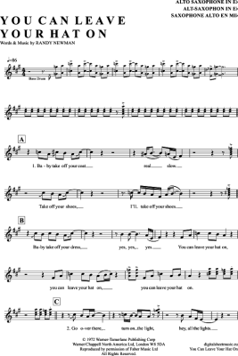 You Can Leave Your Hat On - Sheet Music for Alto Saxophone Joe Cocker