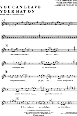 You Can Leave Your Hat On - Sheet Music for Tenor Saxophone Joe Cocker
