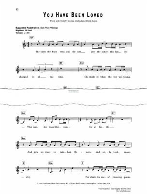 You Have Been Loved, as recorded by George Michael, arranged for voice and easy keyboard with guitar chords.