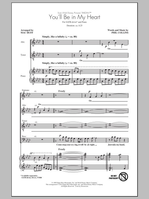 You'll Be In My Heart (from Tarzan) (arr. Mac Huff) (SATB Choir)
