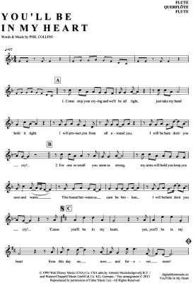 You´ll be in my heart - Sheet Music for transverse flute Phil Collins