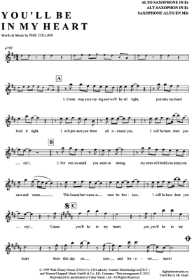 You´ll be in my heart - Sheet Music for Alto Saxophone Phil Collins