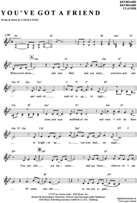 You´ve got a friend - Sheet Music for Keyboard Carole King