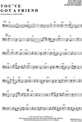 You´ve got a friend - Sheet Music for Bass Guitar Carole King