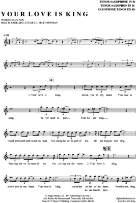 Your love is king - Sheet Music for Tenor Saxophone Sade