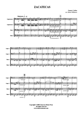 Zacatecas March - Sheet Music for Tuba Quartet: 2x Baritone, 2xTuba Traditional