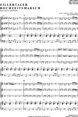 Zillertaler Hochzeitsmarsch - Sheet Music for violin trio + piano Traditional