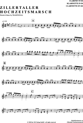 Zillertaler Hochzeitsmarsch - Sheet Music for Clarinet in B-flat Traditional