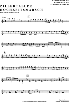 Zillertaler Hochzeitsmarsch - Sheet Music for Alto Saxophone Traditional