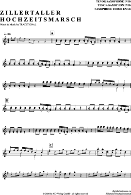 Zillertaler Hochzeitsmarsch - Sheet Music for Tenor Saxophone Traditional