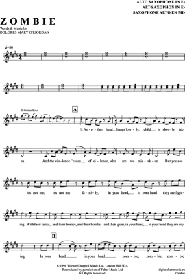 Zombie - Sheet Music for Alto Saxophone The Cranberries